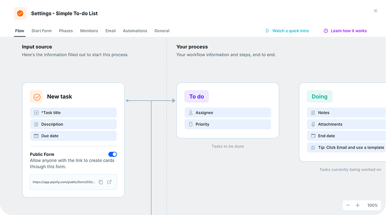Pipefy é uma plataforma de automação e gestão de processos no-code (BPM), que permite criar, personalizar, automatizar e mensurar fluxos de trabalho de forma segura, eficiente e escalável. É ideal para otimizar atividades de RH, compras, financeiro, TI, suporte e muito mais. help.pipefy.comPipefy